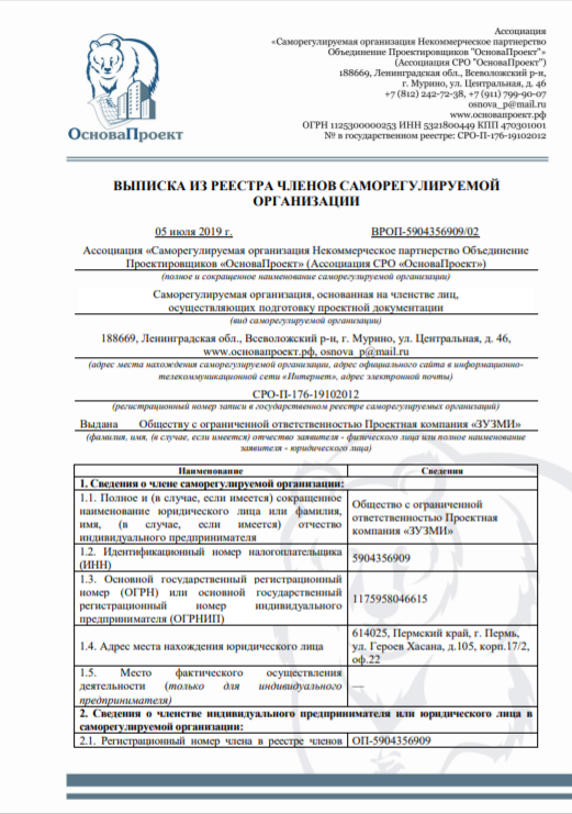 Выписка подтверждает, что ООО "ЗУЗМИ-Барнаул" является членом ассоциации саморегулируемой организации "ОсноваПроект" и имеет право на проектные работы и подготовку проектной документации.